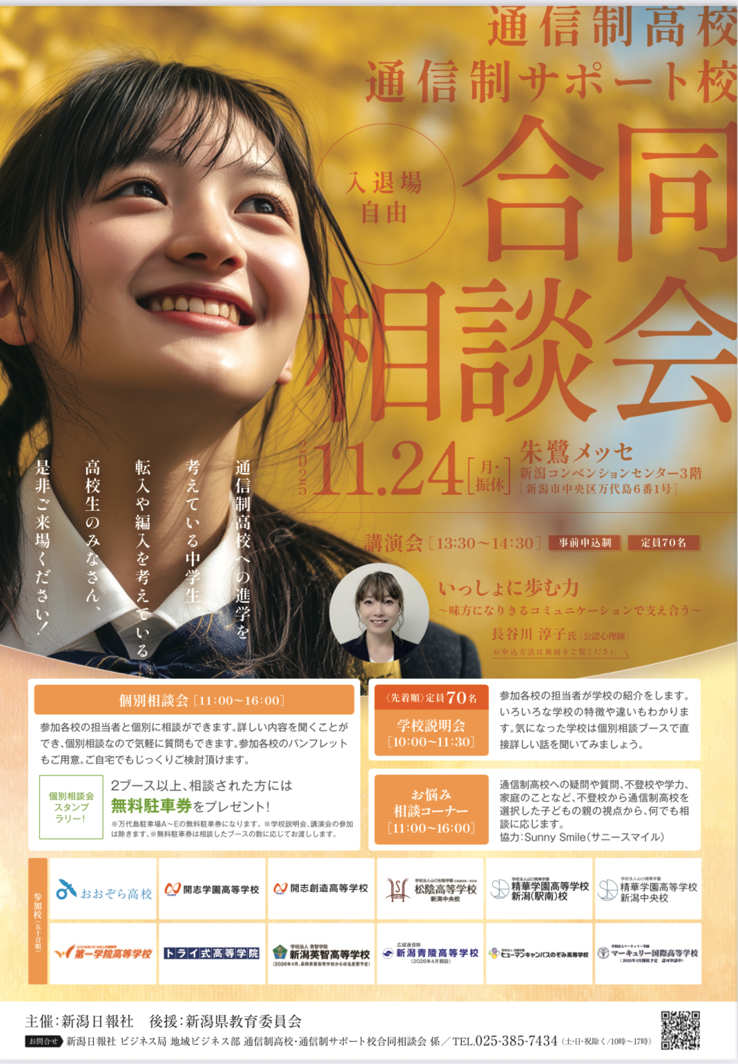 朱鷺メッセにて開催する通信制高校・通信制サポート校合同相談会に開志学園高校が参加致します。